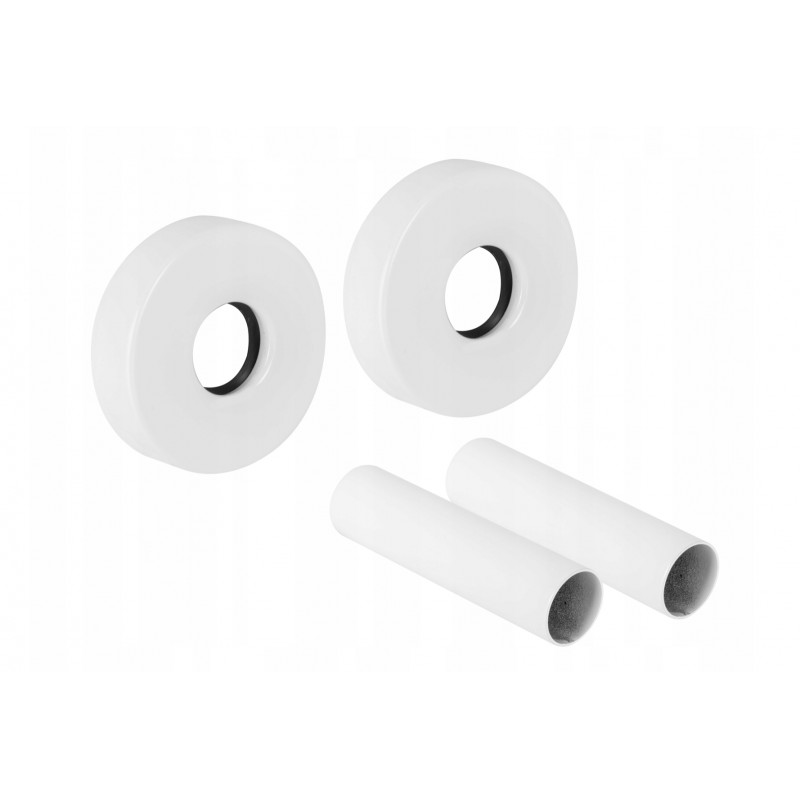 Zestaw maskujący 2 rozety pojedyncze z tulejami w kolorze białym jest idealnym rozwiązaniem dla osób, które chcą zamaskować podłączenie grzejnikowe, osiowe lub dekoracyjne w sposób estetyczny i funkcjonalny.