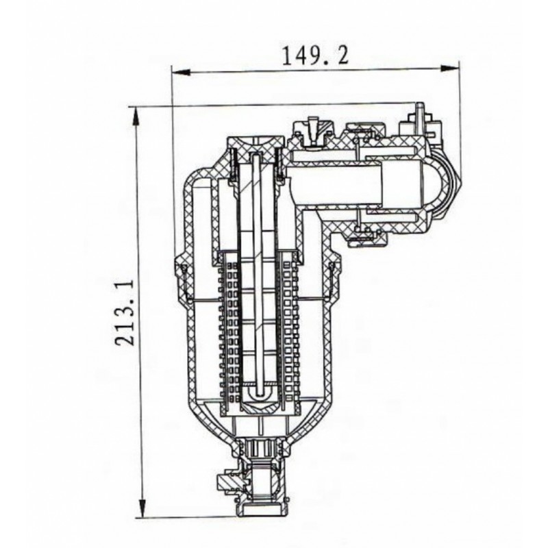 W komplecie znajduje się: Kurek kulowy prosty z półśrubunkiem, Śrubunek, Filtr magnetyczny, Klucz