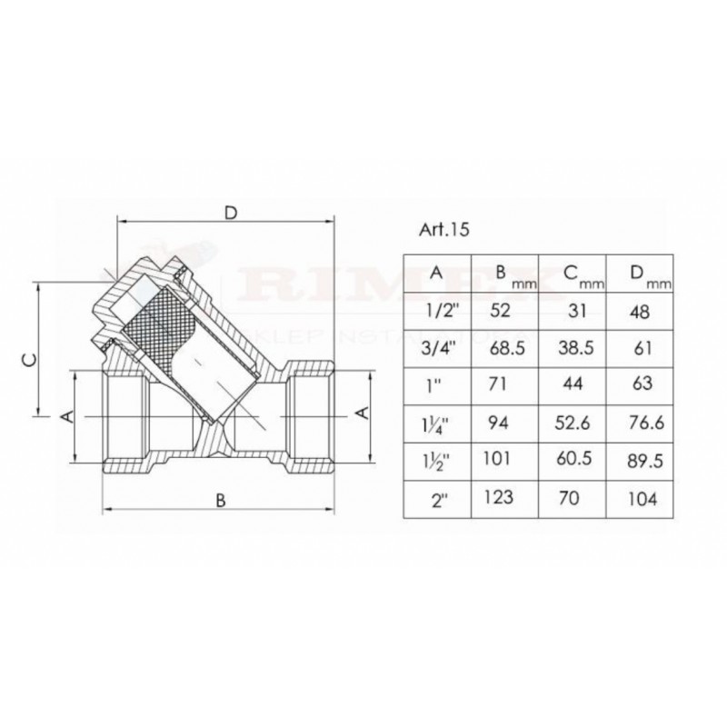 FILTR DO WODY SKOŚNY SIATKOWY 6/4"