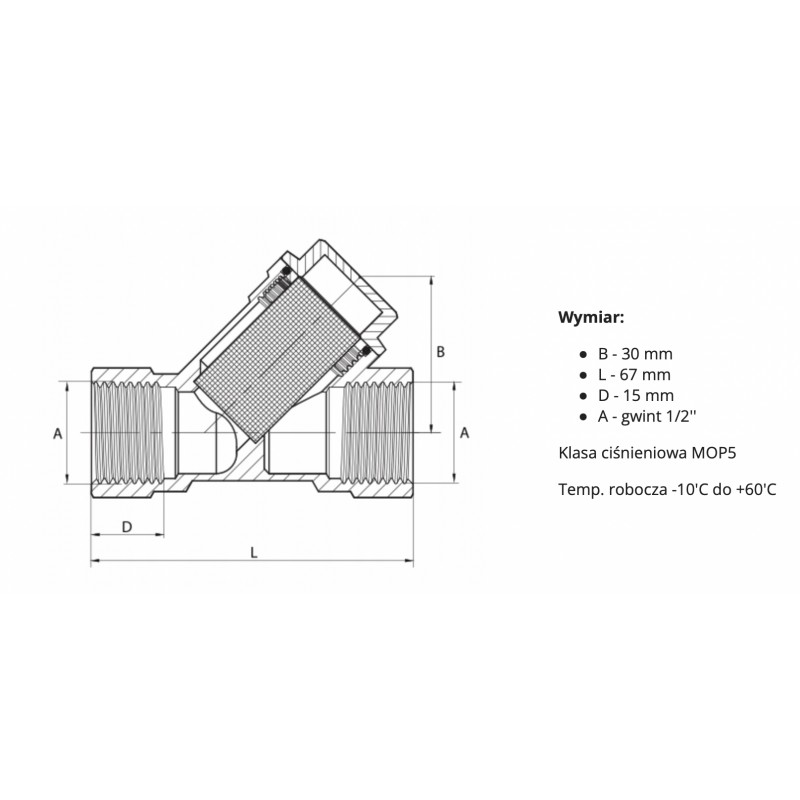 Wysokiej jakości filtr skośny typ: 2300 pełnoprzelotowy do instalacji gazowej w budynkach dla rodziny gazów 1, 2 ,3, do wychwytywania zanieczyszczeń mechanicznych o wielkości 0,2 (±0,02) mm. Korpus i korek wykonany z wysokiej jakości mosiądzu z wkładem filtrującym ze stali nierdzewnej. Charakteryzują się solidnym wykonaniem i trwałym oznaczeniem na korpusach, zgodnie z europejskimi normami i produkowane są w zakładzie nadzorowanym i audytowanym przez Instytut Nafty i Gazu – Państwowy Instytut Badawczy w Krakowie.