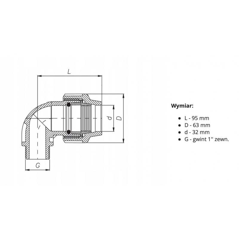 Złączki instalacyjne PE przeznaczone do łączenia rur z polietylenu (PE) w instalacjach wodociągowych wody zimnej. Złączki składaja się z korpusu barwy czarnej, nakrętki barwy niebieskiej, uszczelki typu o-ring oraz pierścieni: dociskowego barwy czarnej oraz zaciskowego barwy białej.