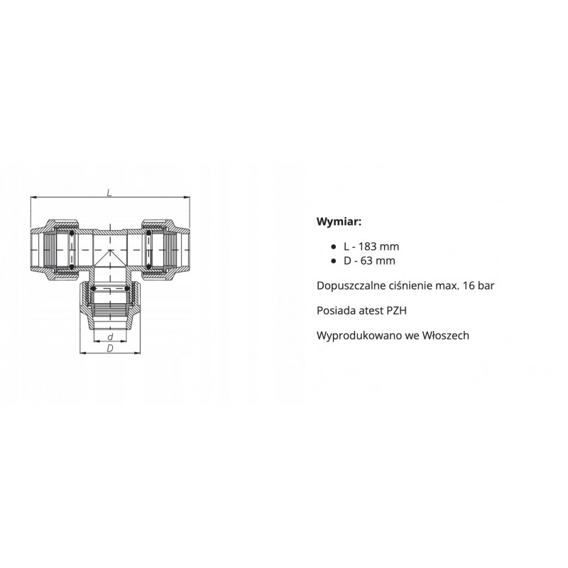 Złączki instalacyjne PE przeznaczone do łączenia rur z polietylenu (PE) w instalacjach wodociągowych wody zimnej. Złączki składaja się z korpusu barwy czarnej, nakrętki barwy niebieskiej, uszczelki typu o-ring oraz pierścieni: dociskowego barwy czarnej oraz zaciskowego barwy białej. Złączki maja końcówki zaciskowe, gwintowane tworzywowe lub gwintowane mosiężne.
