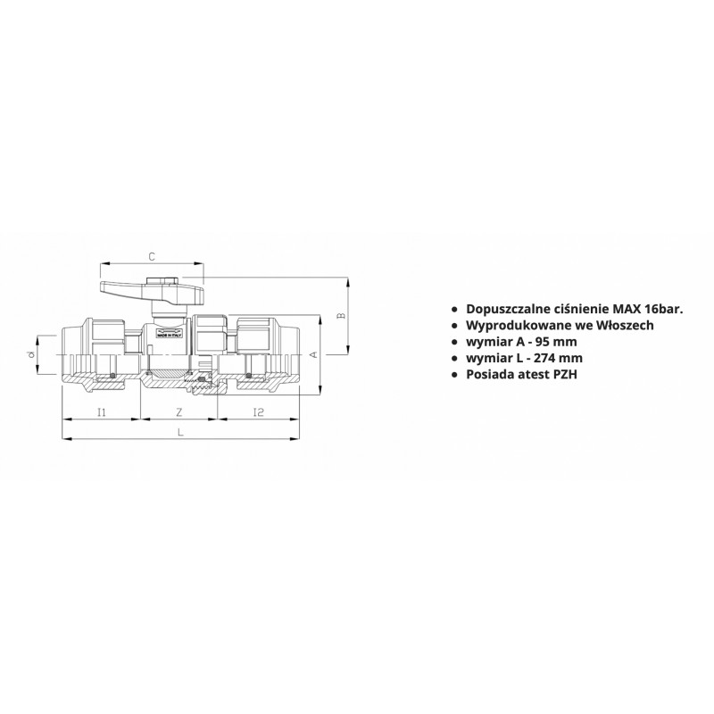 Złączki instalacyjne PE przeznaczone do łączenia rur z polietylenu (PE) w instalacjach wodociągowych wody zimnej. Złączki składają się z korpusu barwy czarnej, nakrętki barwy niebieskiej, uszczelki typu o-ring oraz pierścieni: dociskowego barwy czarnej oraz zaciskowego barwy białej. Złączki maja końcówki zaciskowe, gwintowane tworzywowe lub gwintowane mosiężne.