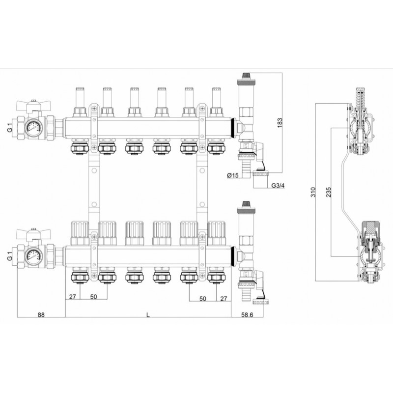 Rozdzielacz ogrzewania podłogowego wykonany z mosiądzu od czołowego producenta to produkt najwyższej jakości, który zapewnia doskonałe warunki do montażu ogrzewania podłogowego w budynkach. Wyposażony jest w:
