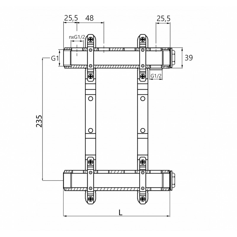 Komplet rozdzielacza wielopunktowy z mosiądzu do ogrzewania podłogowego lub centralnego ogrzewania oraz instalacji wodociągowej w budynkach. Wyposażony w łączniki instalacyjne.
