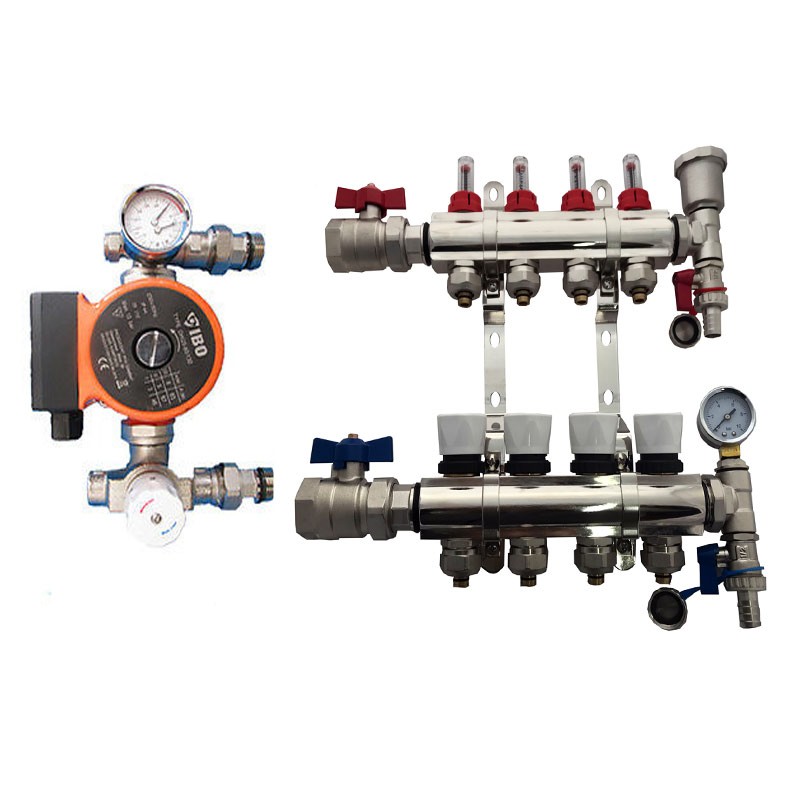 Rozdzielacz Chrome 2 + mieszacz + pompa OHI 60/130 to najwyższej klasy system hydrauliczny, który doskonale nadaje się do każdego domu lub firmy. Rozdzielacz ten posiada belkę z termometrem zegarowym, przepływomierz i pompę obiegową, wykonane z wysokiej jakości materiałów. Przepływomierz jest zakończony nyplem 3/4" i złączką 3/4 x 16 PEX (do rury AL PEX fi 16), dzięki czemu łatwo go podłączyć do istniejącej instalacji.