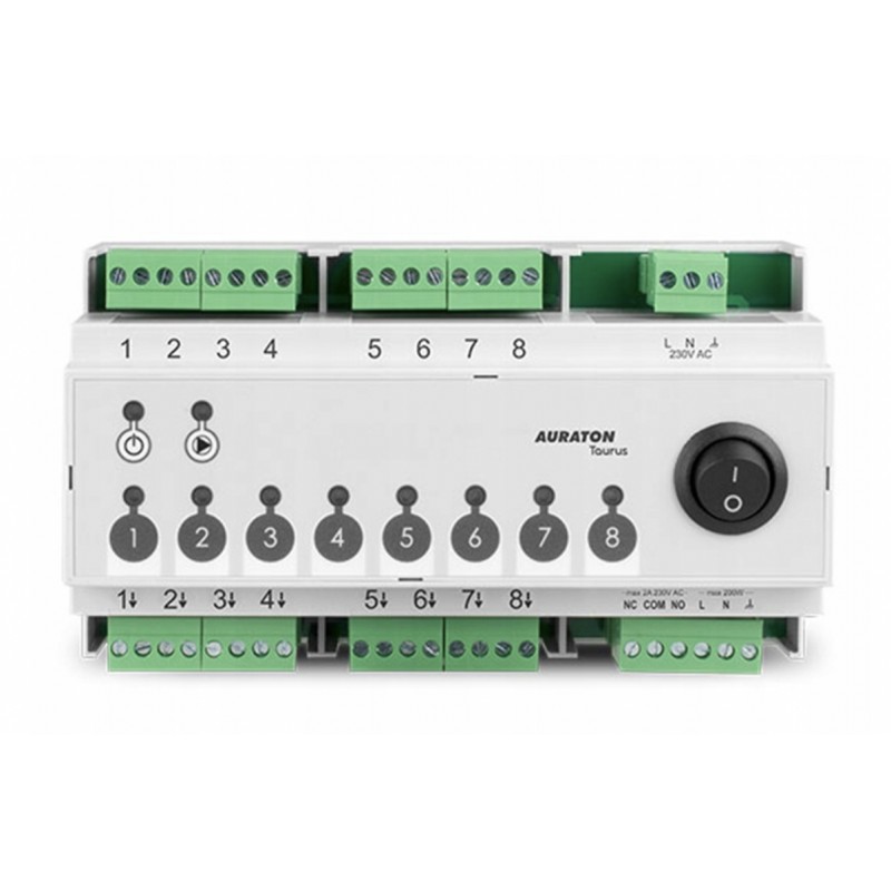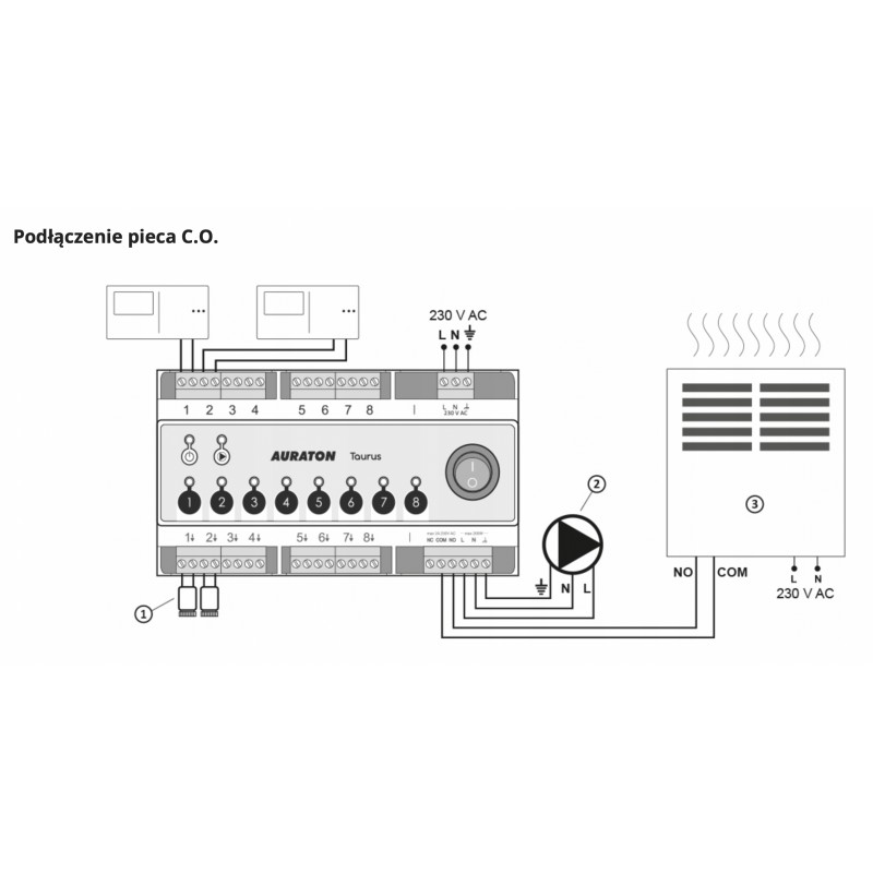 AURATON TAURUS CONTROL STRIP przeznaczony jest do montażu w szafkach instalacyjnych. Umożliwia jednoczesne sterowanie pracą pompy c.o. i urządzenia grzewczego. AURATON Taurus współpracuje z przewodowymi regulatorami temperatury. Dzięki temu daje wygodną i bezpieczną regulację ogrzewania podłogowego. Głównymi zaletami stosowania AURATON TAURUS CONTROL STRIP są: wygoda, komfort i bezpieczeństwo. Dzięki prostej budowie siłownik charakteryzuje się szybkim i łatwym montażem. W skład zestawu wchodzą: listwa sterująca, instrukcja obsługi oraz szablon montażowy.