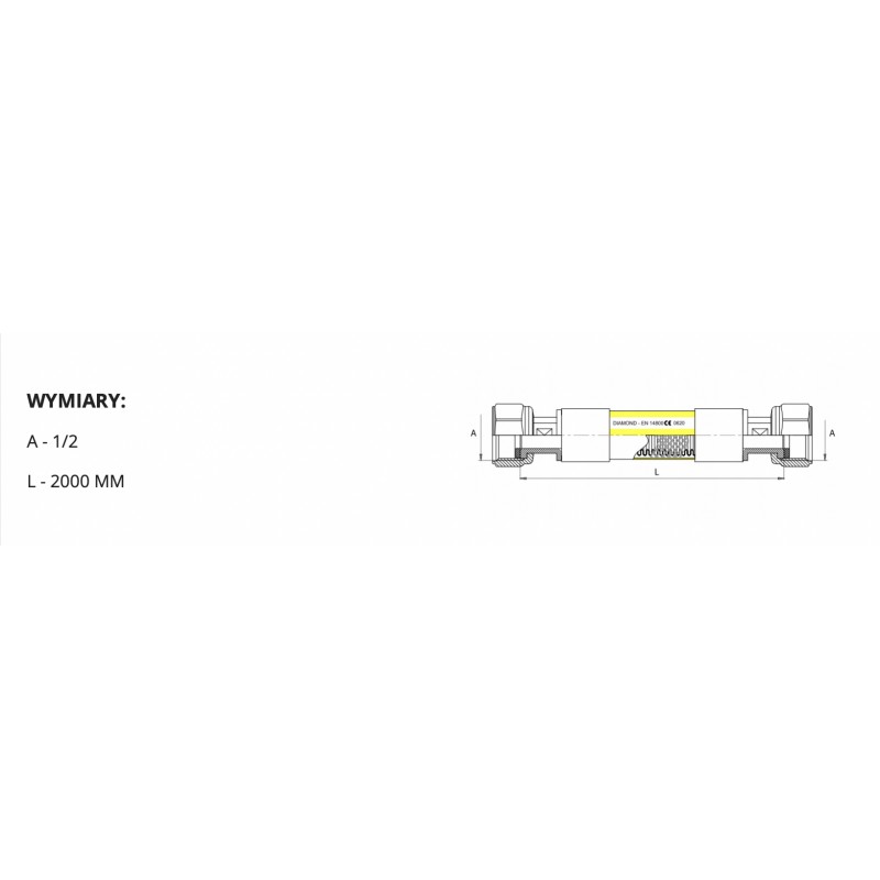 Przewód przyłączeniowy DIAMOND Flex DN 12, którego główne części tj. elastyczna karbowana rura z przyspawanymi przyłączami oraz oplot siatkowy rury wykonane są ze stali nierdzewnej. Od strony zewnętrznej przewód posiada osłonę z PVC. Przyłącze z zawalcowaną, luźną, mosiężną nakrętką posiada uszczelkę z NBR i w wersji kątowej – mosiężne kolano. Przeznaczony jest do przyłączania urządzeń domowych, do instalacji gazowej w budynkach zasilanej gazem naturalnym o ciśnieniu do 0,5 bara.