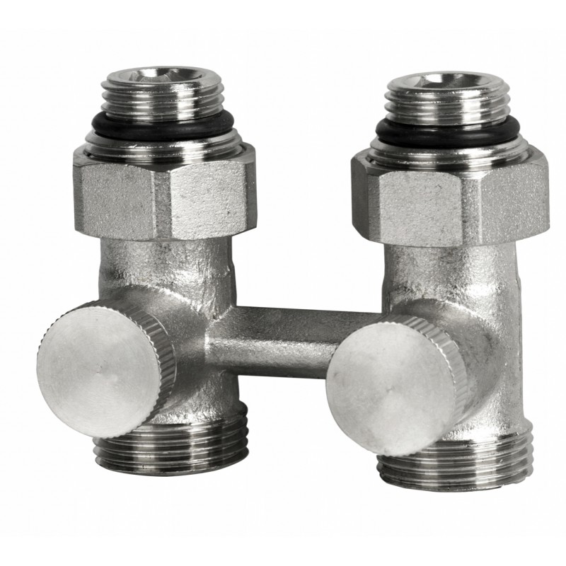 Wysokiej jakości zespół przyłączeniowy z zaworami grzejnikowymi do podłączenia urządzenia grzewczego do instalacji. Zespoły przyłączeniowe występują w wersji prostej jak i kątowej. Do podłączenia grzejnika zasilanego od dołu z wbudowanym zaworem termostatycznym. Wykonane z mosiądzu. Wszystkie zespoły przyłączeniowe są piaskowane i po tej operacji niklowane. Zespoły przyłączeniowe charakteryzują się solidnym wykonaniem i trwałym oznaczeniem na korpusach, zgodnie z europejskimi normami.