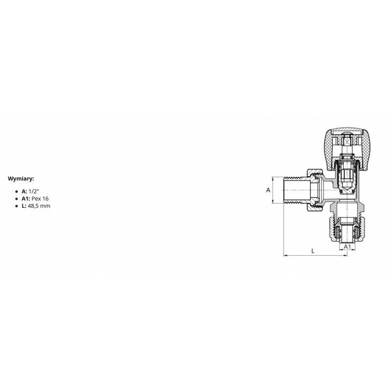 Zawór grzejnikowy zasilajacy z bezpośrednim podłączeniem pod rurę pex/alu/ pex 16mm